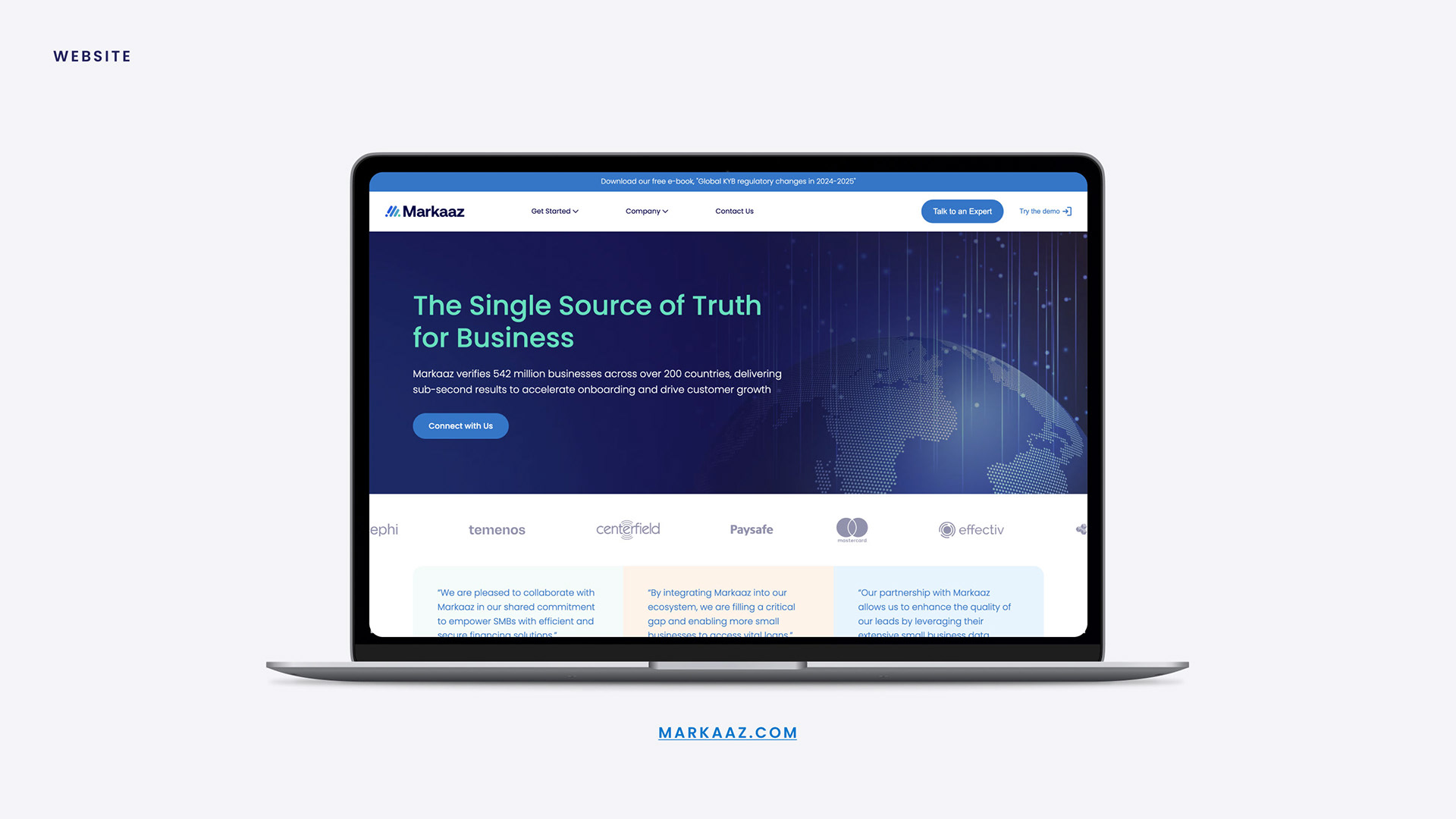 Small businesses struggle to access credit and services due to fragmented, incomplete data. Markaaz set out to build the first global business identity platform. The company needed a strong design and brand foundation to differentiate in a crowded market, win enterprise clients, and scale operations.