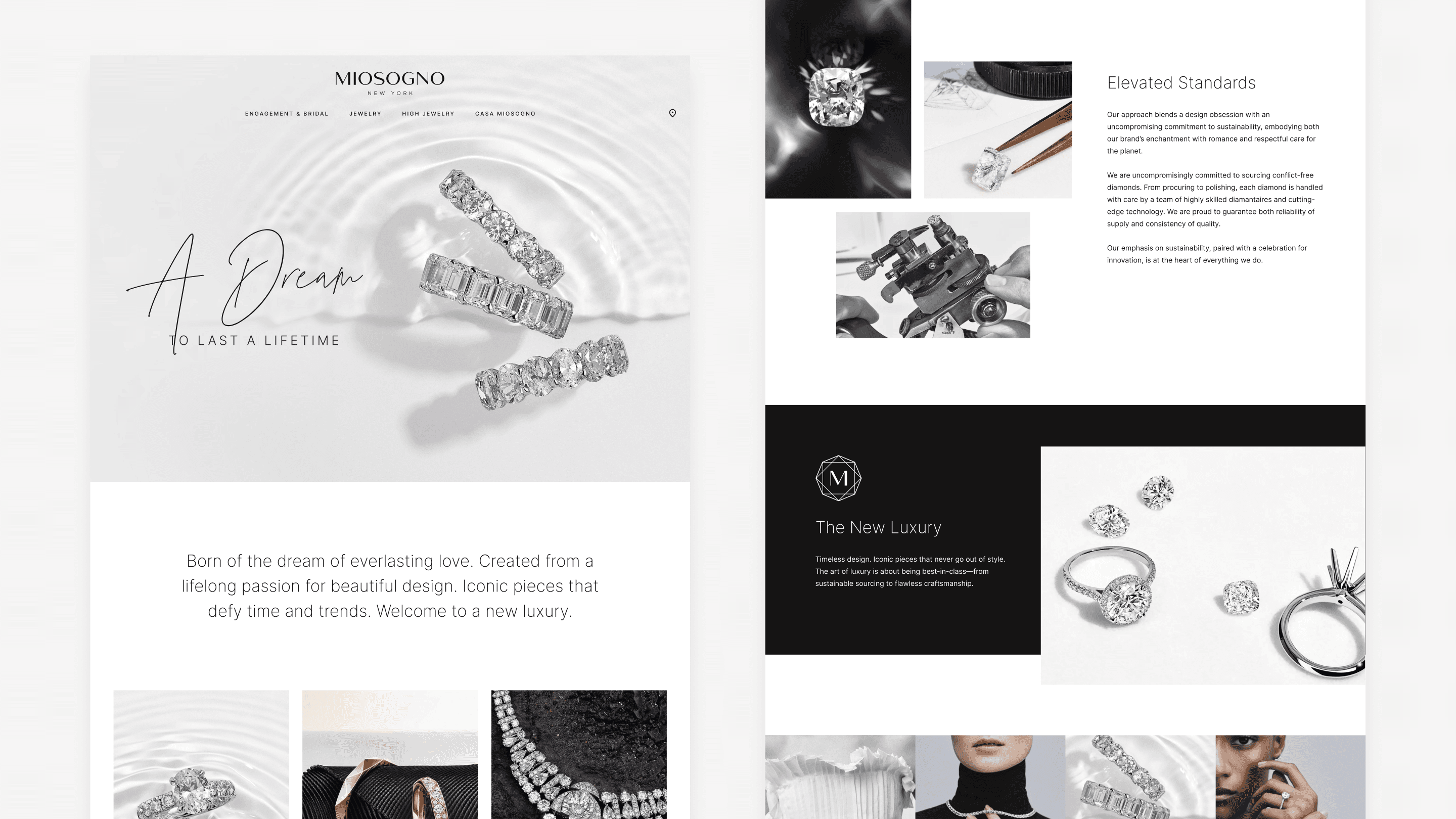 For Miosogno, a high-end jewelry brand, I led a comprehensive visual evolution. My role was to move beyond simple web design to architect a cohesive brand identity that mirrors the exquisite craftsmanship of the jewelry itself. I developed a new visual language and a high-fidelity digital presence designed to immerse the user in a world of elegance, exclusivity, and refined storytelling.