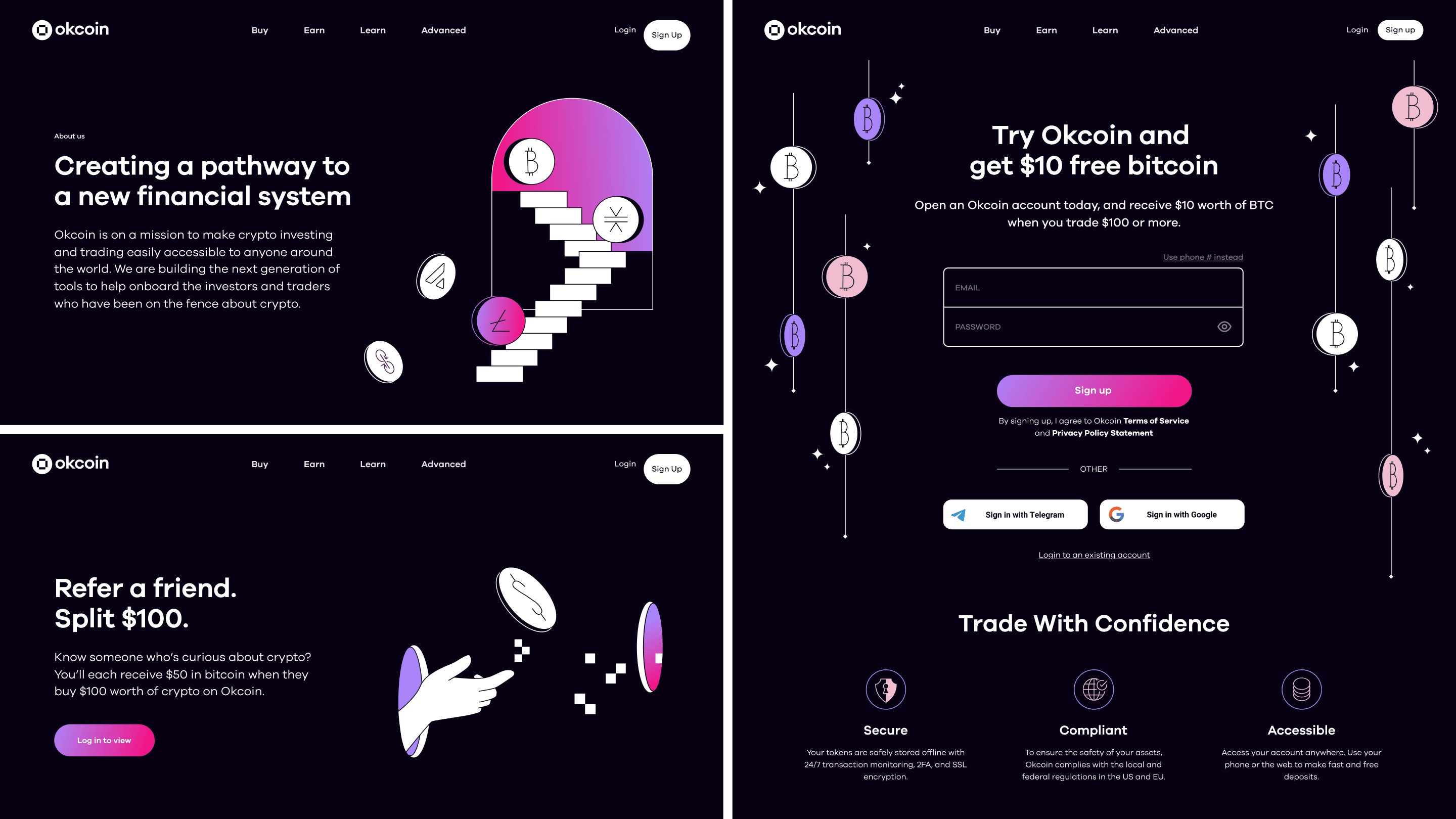 In an industry often defined by cold data, I believe design is the bridge to adoption. For Okcoin’s landing pages, I ensured that animation and illustration weren't just decorative "wrappers," but functional guides baked into the product’s DNA. By using motion to simplify complex onboarding flows, we reduced cognitive load and built an immediate emotional connection, transforming a technical entry point into a welcoming user experience.